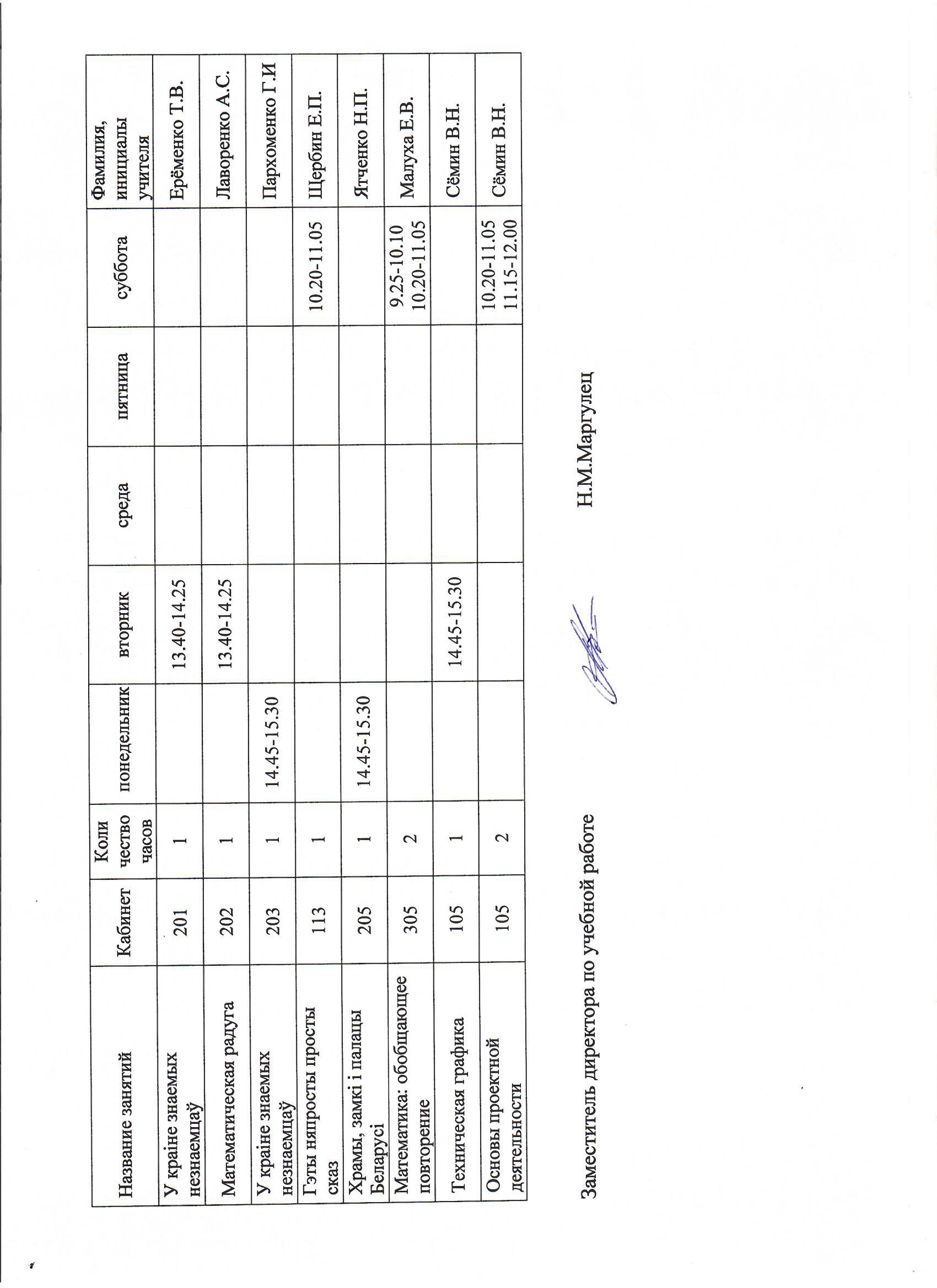Расписание межшкольных факультативных занятий
